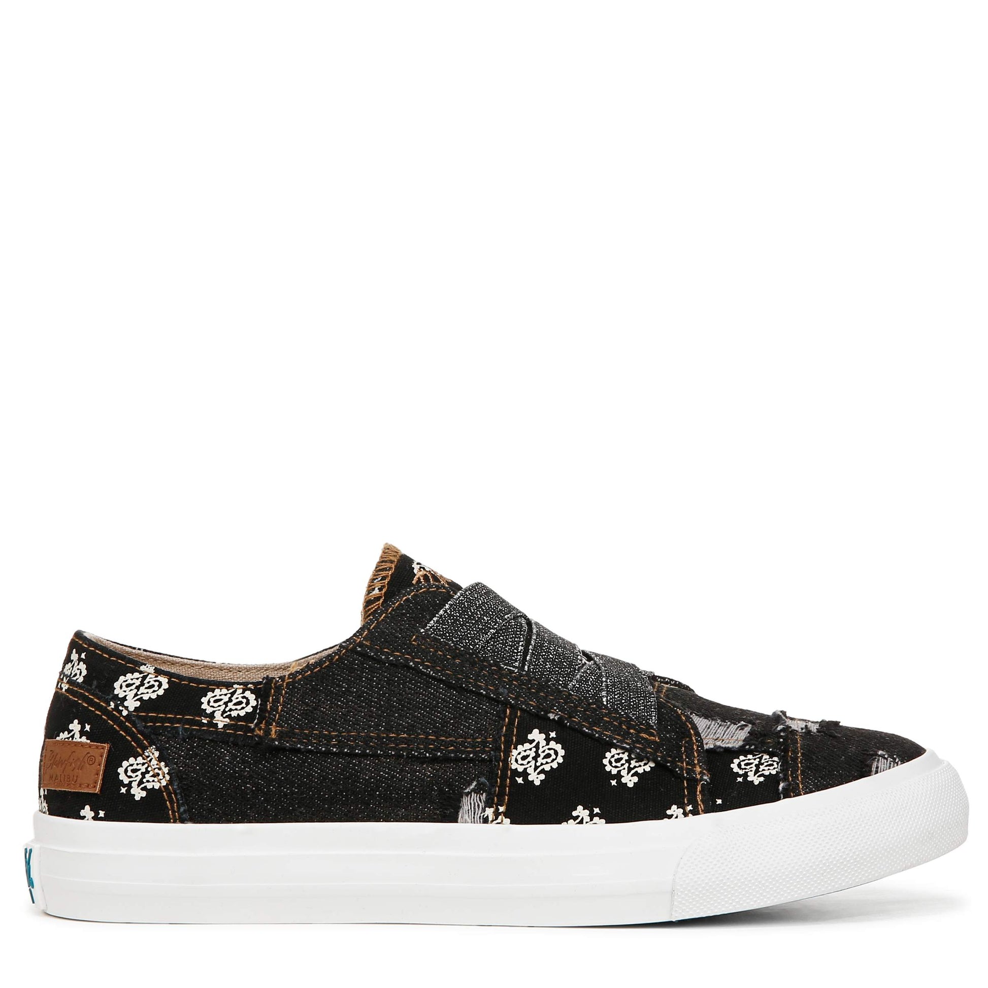 Take your look old school with the distressed design of the Blowfish Marley slip-on sneaker. Glitter elastic stretch laces, patchwork canvas upper. *Runs narrow