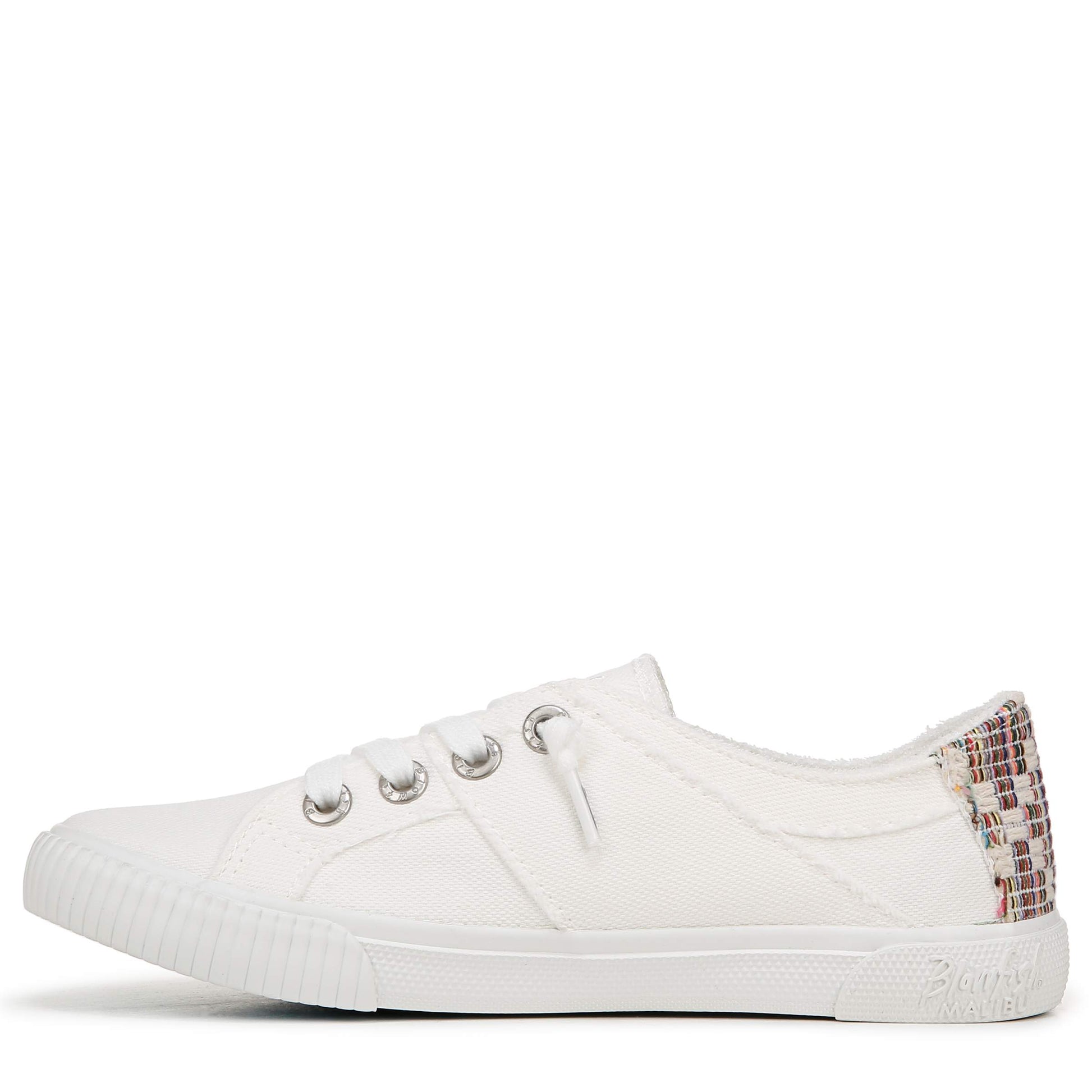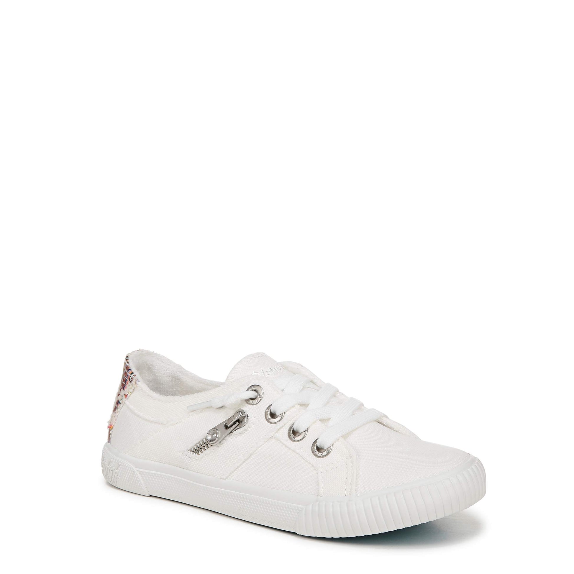Classic and cute, this low-rise sneaker features a pre-distressed upper with top-stitching, terry cloth lining, slip-on entry, decorative laces, and decorative zipper.