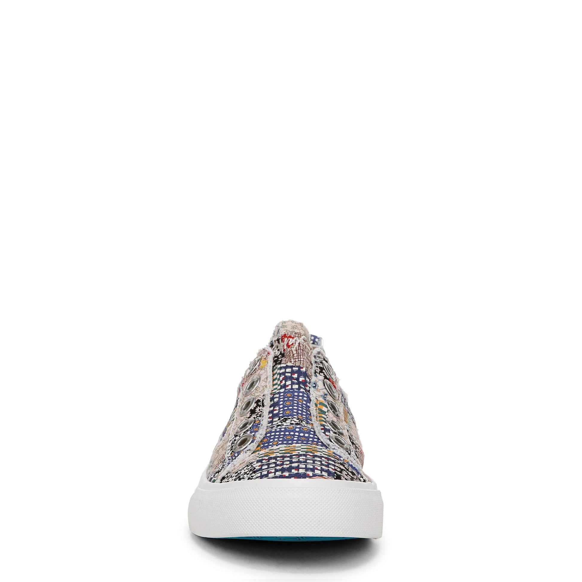 Cute and quirky the Play sneaker features a cushioned footbed and a pre-distressed, unlaced look with elastic inside to keep them on and take them off easily.